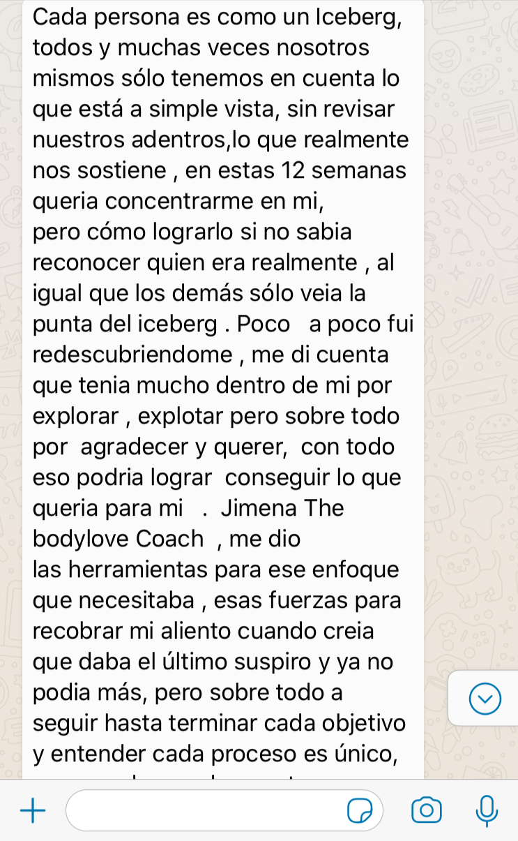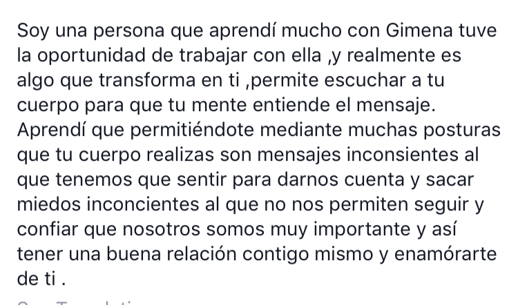 En mi camino de lo que se trató fue de volver a él, ir de un estado de desconexión a otro de conexión, a través del movimiento, yoga, respiración consciente, observar cómo me hablaba, trataba. Revisar mi historia, creencias e ir muy profundo, un camino de deconstrucción, y nuevas miradas. Las disciplinas que me ayudaron y fueron fundamentales: el coaching ontológico, coaching desde un abordaje corporal, las artes escénicas, el yoga y la meditación. El enfoque en mi trabajo es INTEGRAL (holístico), incluyo mente, cuerpo, emoción y espíritu, ya que somos un TODO. He acompañado a muchas personas no solo a mejorar la relación con su cuerpo, sino a incluir movimiento a su vida, bajar la exigencia y ansiedad, poder vivir con menos estrés y más conectados con ellos mismos.